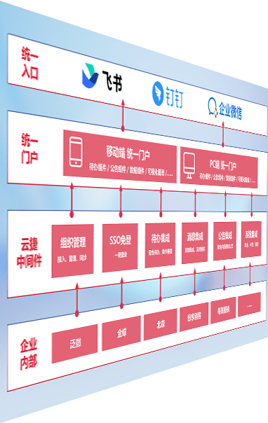 对协作平台提供支持服务,,,支持企业应用与协作平台对接,,,,包含组织同步、、、、消息集成、、待办集成等。。支持目前主流的协作平台:钉钉、、、企微和飞书。。。